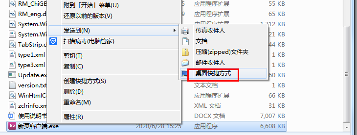打開D盤的client和server文件夾,找到新頁客戶端和新頁服務端,右鍵——發送到——桌面快捷方式