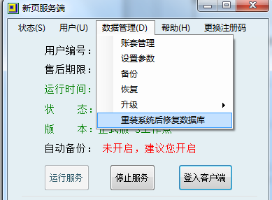 打開服務端——數據管理——重裝系統后修復數據庫。