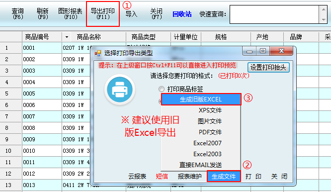 1.1 從軟件中導出商品信息。請檢查導出后的Excel,如規格、單價、備注等原有的內容,是否有缺漏。
