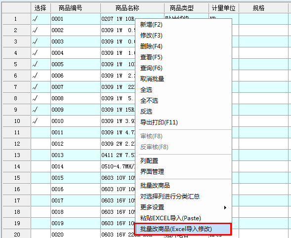 2.1 右鍵選擇批量改商品(Excel導入修改),選擇修改后的Excel。