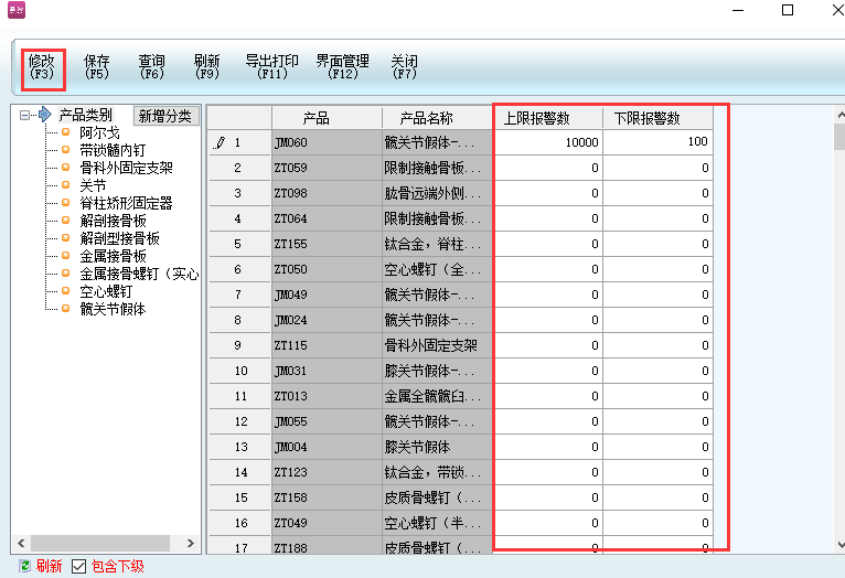 對倉庫產品需要單獨進行上下限的修改,不能統一修改上下限。保存即可