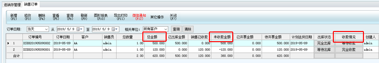軟件默認是按出庫結算,即未收款金額=已出庫金額-已收款金額;