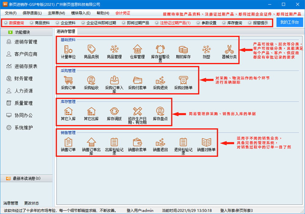 具有供貨者、購貨者以及購銷醫療器械的合法性審核控制功能,以及證件過期預警;
