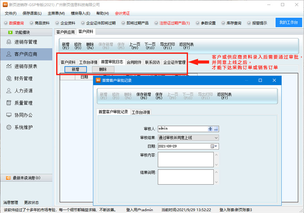 可以快速錄入、管理客戶供應商的首營審批資料;